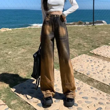 High Waist Yellow Wide-Leg Jeans – Autumn Women’s Vintage-Inspired Y2K Street Denim