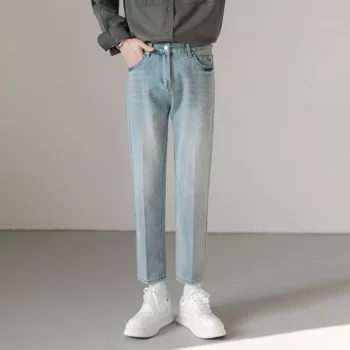 Men’s Slim Fit Stretch Denim Jeans – Casual Light Blue Ankle-Length Pants