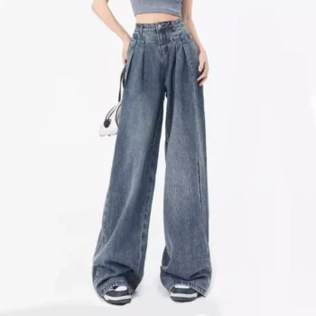 Wide Leg High-Waist Vintage Jeans – Women’s Y2K Streetwear Denim