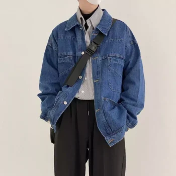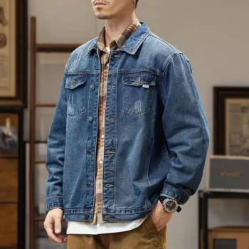 Men’s Trendy Retro Denim Jacket – Loose Fit Casual Spring/Autumn Coat