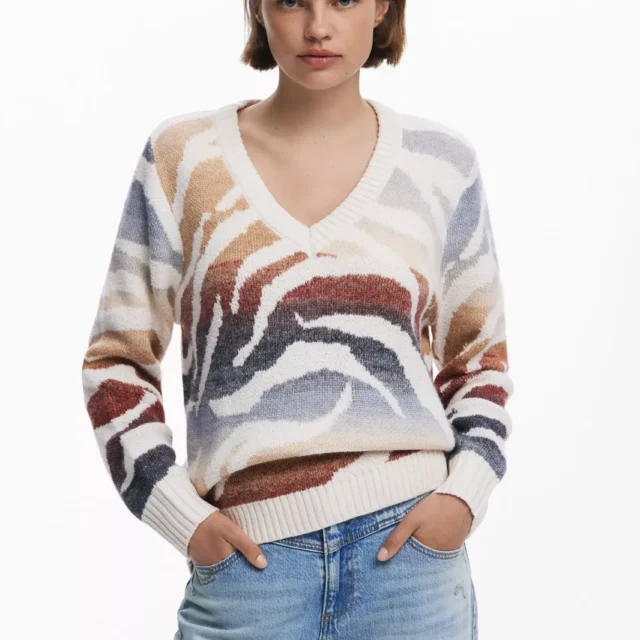 From weekday errands to weekend getaways, this Desigual knitwear piece is your go-to for warmth and effortless style. Whether you’re heading to work or cozying up at home, it’s as versatile as it is beautiful. The V-neckline gives you space to show off your favorite necklace or layer a thermal underneath, and the soft feel makes it hard to take off.