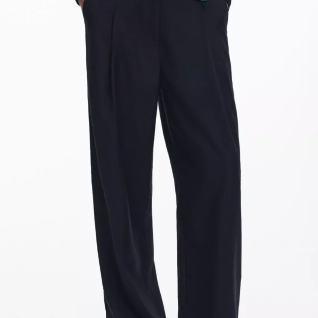 These trousers are a timeless addition to any capsule wardrobe. Dress them up with a sleek blouse and heels, or keep it casual with ankle boots and a cozy knit. Their understated black hue makes them a neutral base for any outfit, letting you experiment with textures and colors with ease.