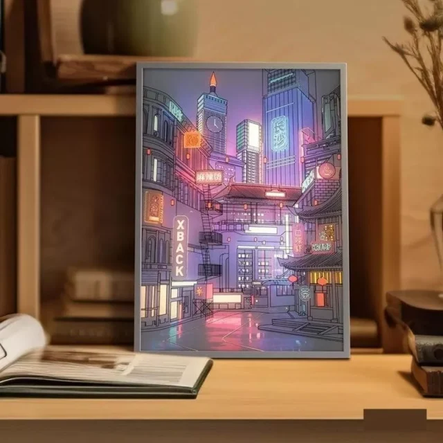 Introducing our stunning Anime LED Cityscape Night Light, designed to add a touch of elegance and romance to any room. This high-definition, LED-enhanced artwork showcases a beautiful city night view, offering a tranquil and mesmerizing ambiance. Its sleek, narrow bezel design makes it an ideal addition to your home, effortlessly blending with any decor style.