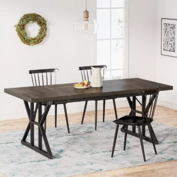 70.8″ Rustic Brown Farmhouse Dining Table for 6-8 People – Industrial Wood Style