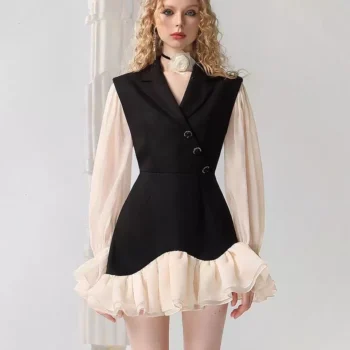 Elegant Ruffled Mini Dress with Contrast Color Design for Women