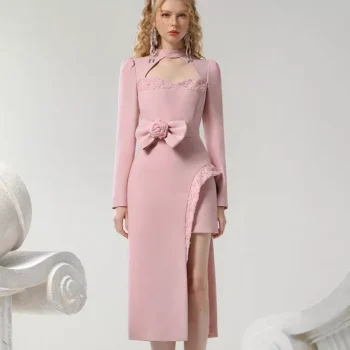Elegant Irregular Design Hollow Waist Pink Maxi Dress