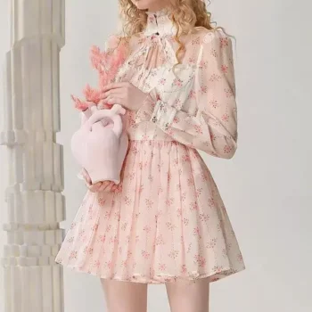 Vintage Long-Sleeve Lace Short Dress with Doll Collar