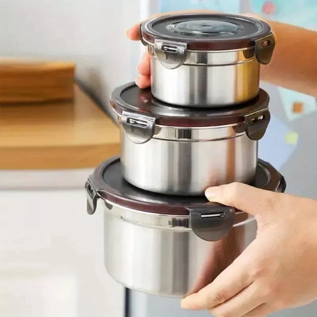 Our 3pcs Stainless Steel Lunch Box Set stands out with its impeccable design and functionality. The round shape and flip-top closure make these containers user-friendly and easy to handle. Their sleek and modern design isn’t just about looks; it’s about making your life easier and more organized. Perfect for busy professionals, students, and anyone looking to improve their meal prep routine, these containers are an investment in your health and the planet’s future.