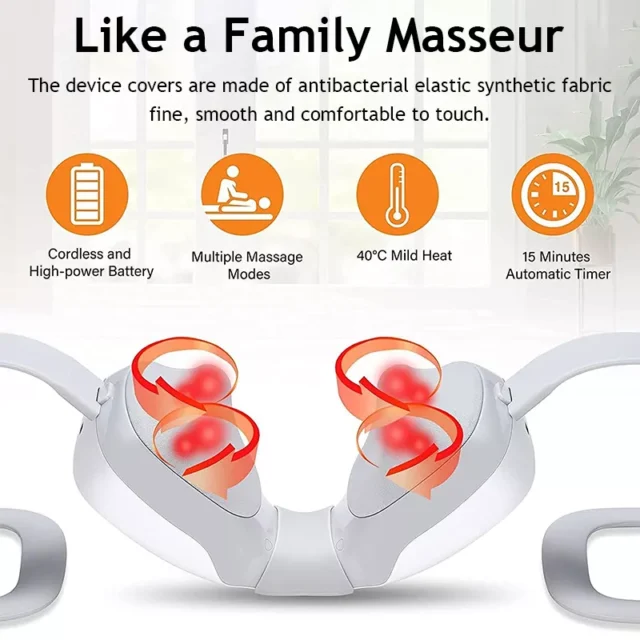 Equipped with a 2600mAh rechargeable battery, this massager offers up to 120 minutes of relaxing use after just 3 hours of charging. Its intelligent 15-minute timer ensures safe sessions without overuse. The innovative ABS+PC composite casing is tough yet gentle, while the antibacterial Lycra fabric on the massage heads gives a soft and skin-friendly touch. With 4 adjustable modes and bidirectional kneading nodes, you can customize every massage to your exact comfort level.