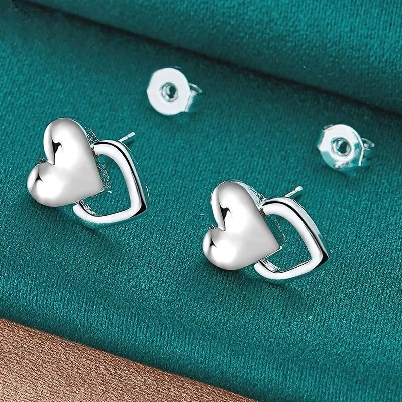 Elegant 925 Sterling Silver Heart Stud Earrings