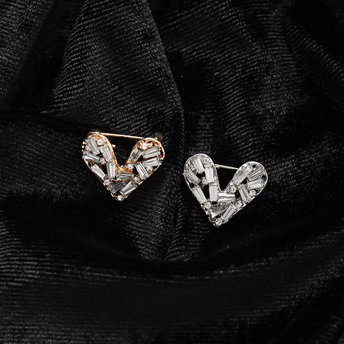 SKEDS Exquisite Small Size Rhinestone Heart Brooches Pins For Women Lady Elegant Crystal Design Suit Clothing Accessories Gift