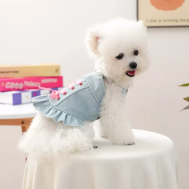 Elegant Denim Dog Dress for Small Pets – Autumn Outfit