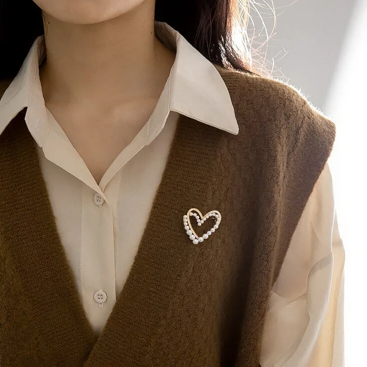 What sets this brooch apart is its blend of classic charm and contemporary design. The double-layer heart symbolizes love and commitment, making it more than just an accessory—it’s a statement. The addition of rhinestones and imitation pearl adds a layer of luxury, making it an exquisite piece that’s accessible for every woman. Its versatility and durability make it a staple accessory that you’ll reach for time and again.