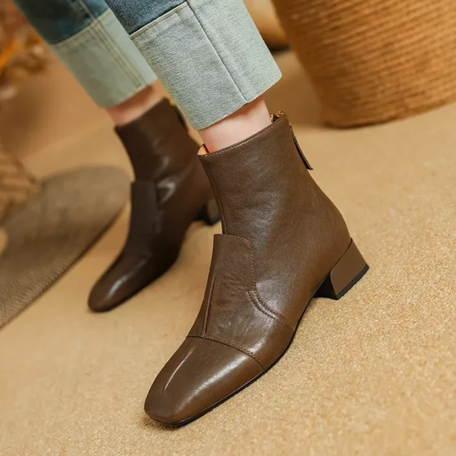 Upgrade your cold-weather style with these elegant genuine leather ankle boots, designed for modern women who value both comfort and sophistication. Crafted from premium genuine leather and lined with buttery-soft leather, these boots feel as luxurious as they look. The chic square toe and sturdy square heel add a timeless touch, making them perfect for everyday wear or dressing up for the office. With a practical side zipper for easy wear, they are the ideal blend of fashion and function.