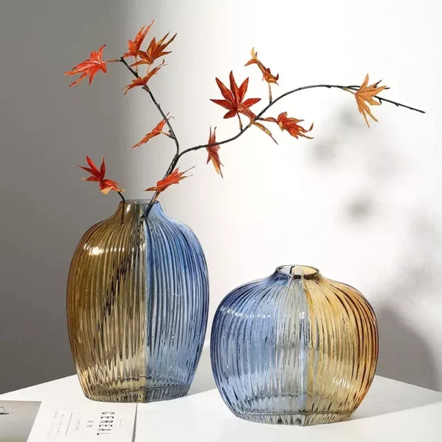 This elegant glass flower vase is designed to make any room feel brighter and more inviting. With its unique splicing color design and vertical stripes, it offers a modern yet timeless look that instantly elevates your home décor. Whether you’re displaying fresh blooms, dried flowers, or using it as a hydroponic terrarium, this vase becomes a stunning centerpiece that captures attention.