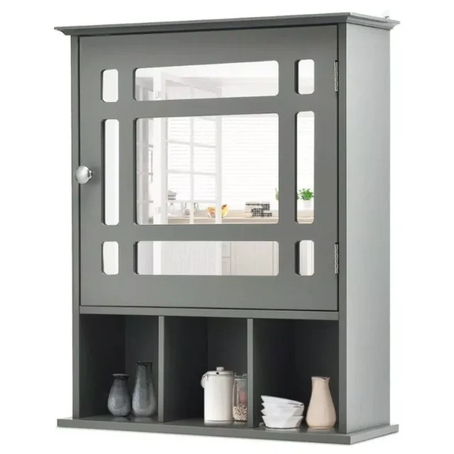 Introducing our sleek and versatile Grey Wall-Mounted Mirrored Medicine Cabinet – a perfect blend of elegance and practicality for your bathroom or any room needing extra storage. This sophisticated piece is not just a storage solution but a style statement, enhancing the aesthetics of your home.