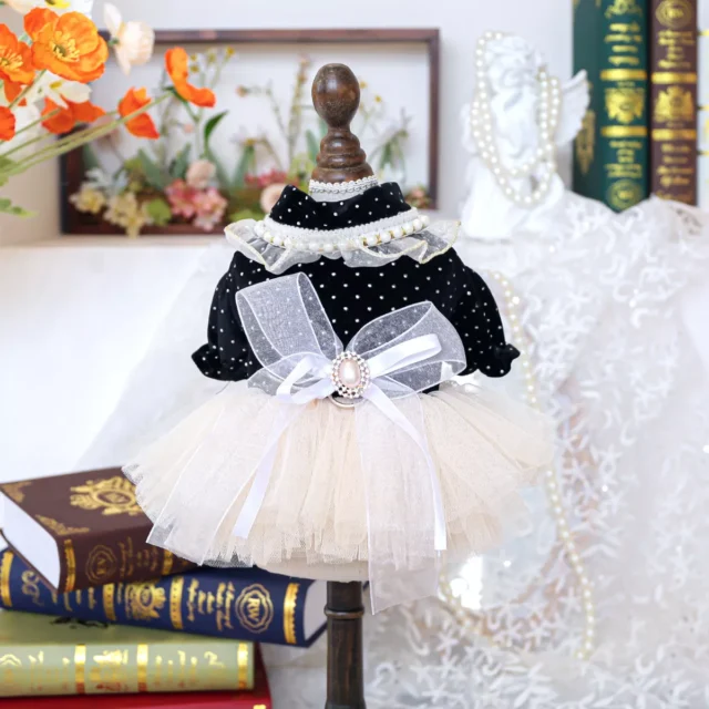 This outfit combines soft pastel tones with a luxurious pearl embellishment and a stylish bow for an ultra-sweet, feminine look. The spliced mesh skirt flows beautifully, giving your pet a princess-like appearance that’s ideal for making memories and snapping adorable photos. It’s more than a dress – it’s a fashion moment.