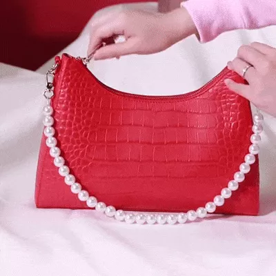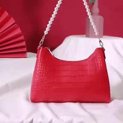 Our Red Leather Shoulder Bag shines in versatility. It’s perfect for daily commuting, adding a pop of color and sophistication to your work attire, or for special occasions where its pearl embellishments will complement your elegance. Its adjustable and removable strap makes it a go-to choice for any event, ensuring you always step out in style.