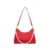 Elegant Red Leather Shoulder Bag with Pearl Accents
