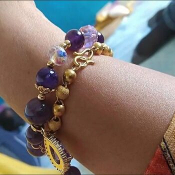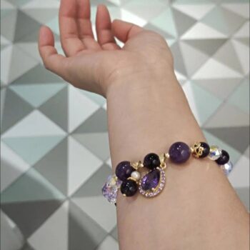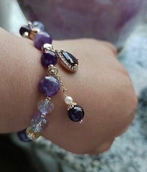 I recently received this bracelet, and it's absolutely stunning. The way the light catches the deep purple hues of the amethyst is mesmerizing. It's evident that each stone was selected with care, giving the bracelet a unique and personal touch. Wearing it feels special, almost like carrying a piece of nature's art with me. The bracelet also has a lovely weight to it, balancing delicacy with sturdiness. It's been a conversation starter at many gatherings, and I always look forward to wearing it. Definitely a treasured piece in my jewelry collection.