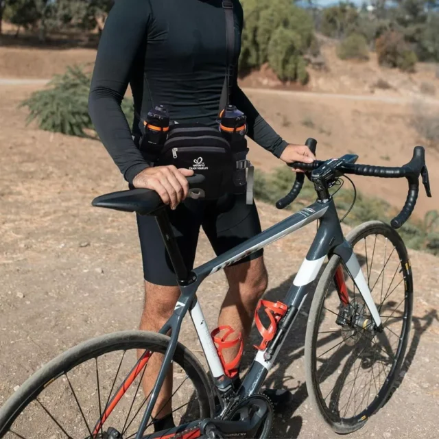 Stay hydrated without slowing down. The dual bottle holders can expand to fit bottles up to 35 oz (1000 ml) and feature elastic cords to keep them secure while you run, hike, or cycle. Never worry about your bottles tipping or bouncing again.