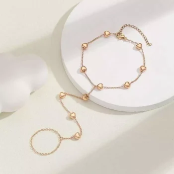 Boho Chic Love Heart Hand Chain Bracelet with Ring