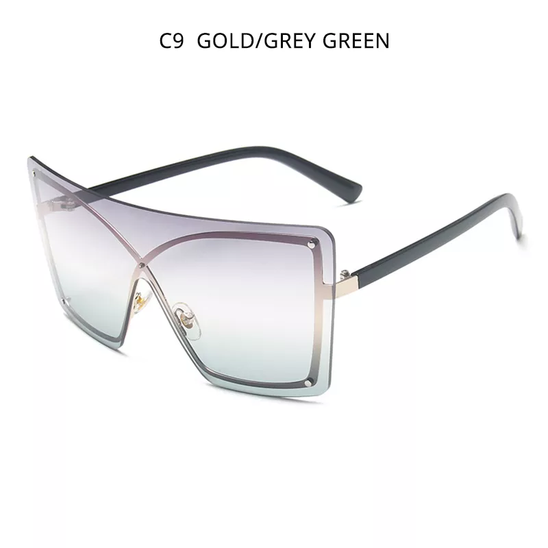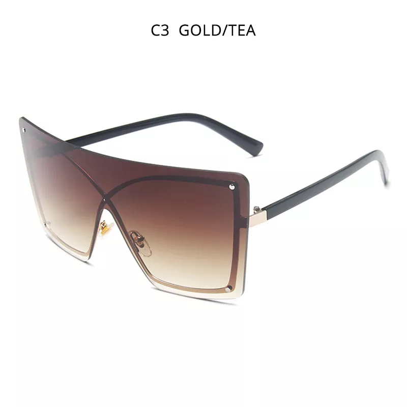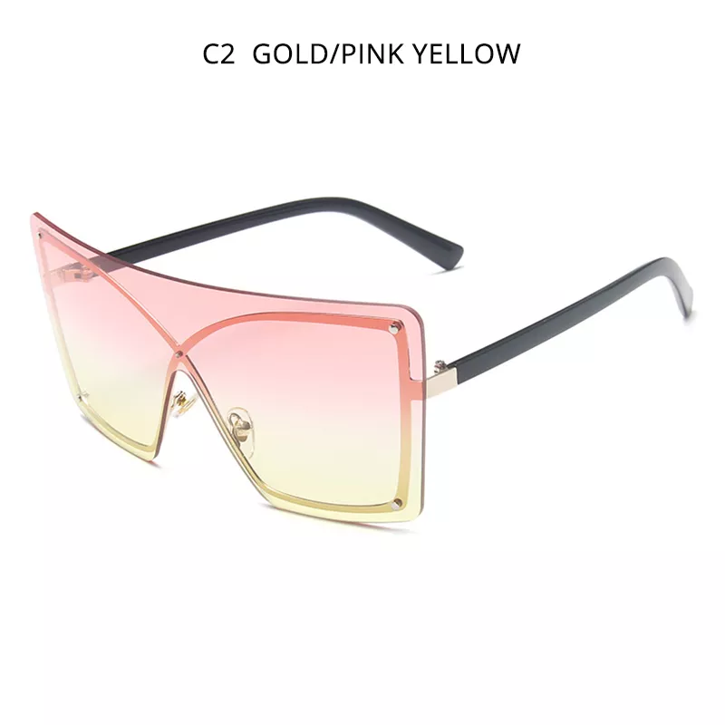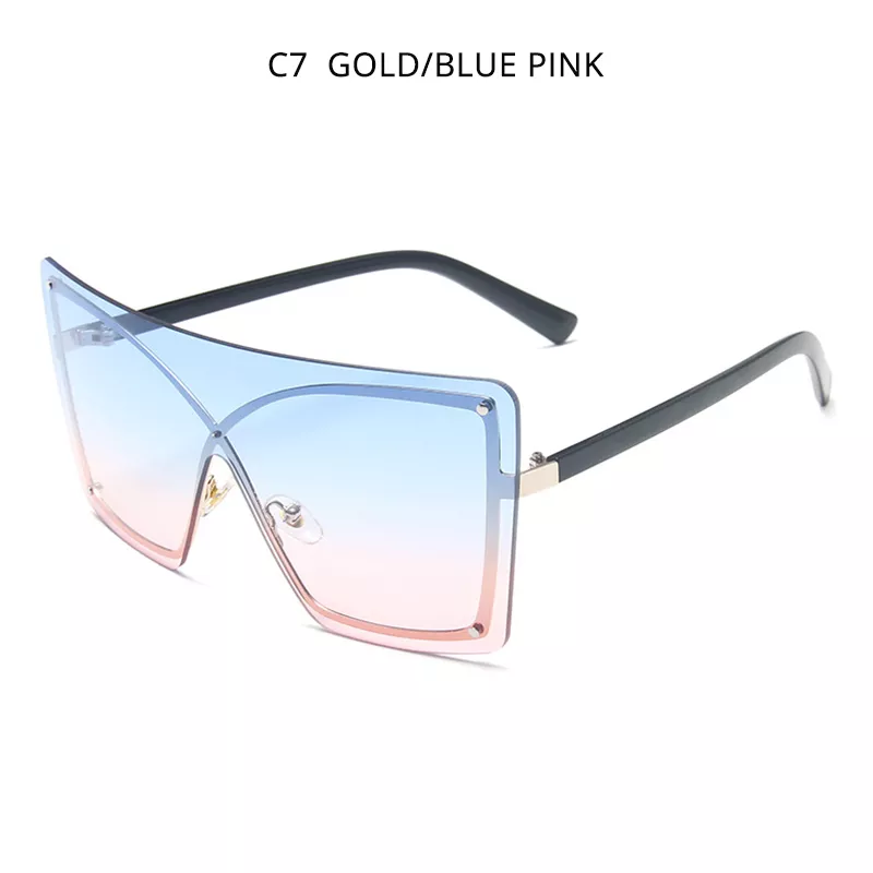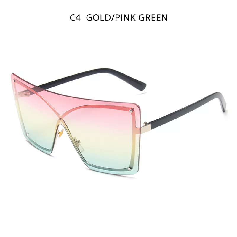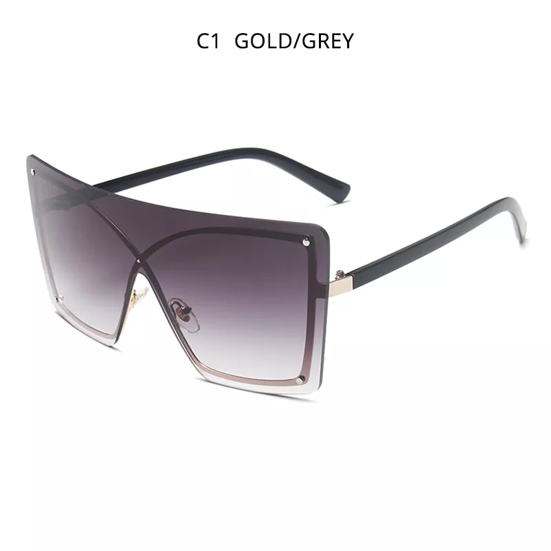 Designed for both fashion and function, our oversized sunglasses offer superior protection and a comfortable fit. Made from high-quality plastic, the rimless frame is lightweight yet durable. The gradient lenses provide UV400 protection, shielding your eyes from harmful rays while enhancing your visual clarity.