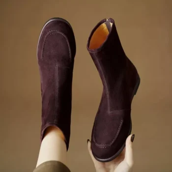 Autumn Suede Leather Chelsea Boots for Women – Low Heel Slip-On Ankle Boots