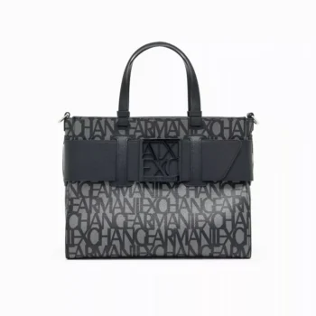 Armani Exchange Women’s Beige Printed Handbag with Shoulder Strap