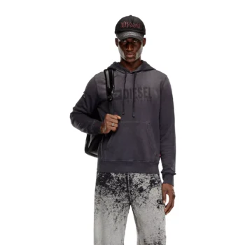 Diesel Men’s Grey Cotton Hoodie Sweatshirt