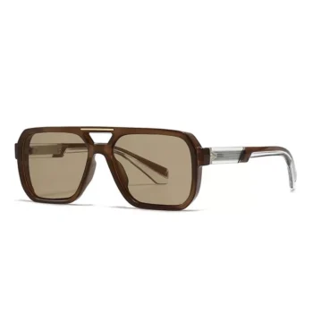 Retro Square Double Bridge Sunglasses UV400 for Men & Women with Rivet Detail