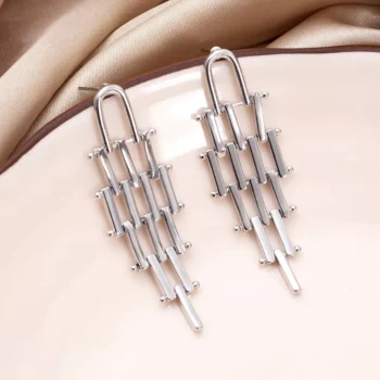 Elegant Brass Tassel Drop Earrings – Vintage Geometric Stud Design