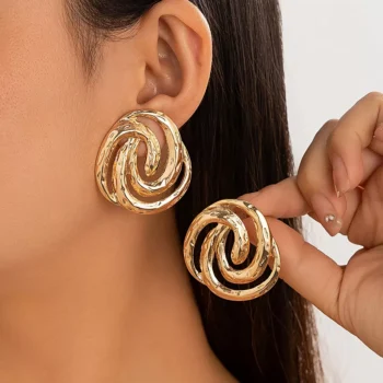 Retro Spiral Geometric Stud Earrings – Punk Hollow Circle Design
