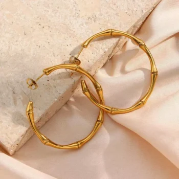 Minimalist Thin Bamboo Large Gold Hoop Earrings – Waterproof Stainless Steel