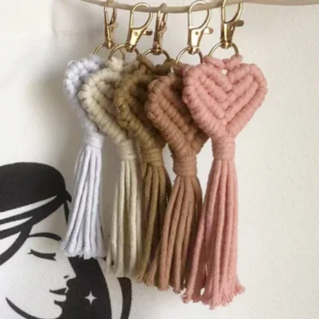 Heart-Shaped Rhinestone & Plush Pom Pom Keychain