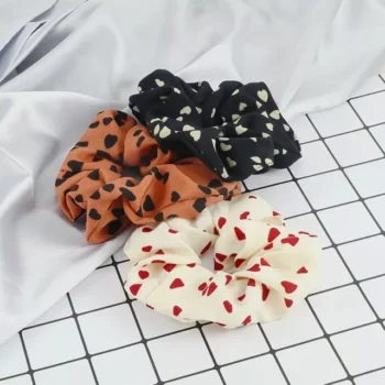 Charming Heart Dot Print Elastic Hair Scrunchie