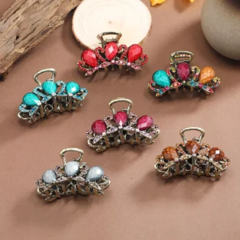 Big Colorful Gemstone Crown Hair Claw Clip for Women and Girls