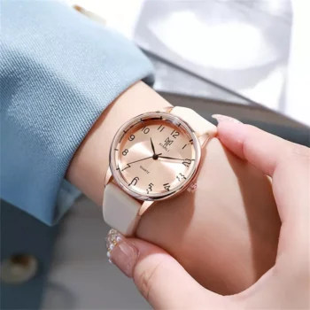 Luxury Rose Gold Digital Women’s Quartz Watch with Black Silicone Strap