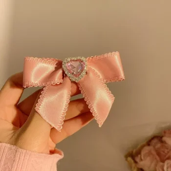 Elegant Pink Bow Hairpins with Zircon Heart