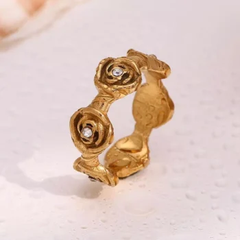 Elegant White Rhinestone Rose Cocktail Ring