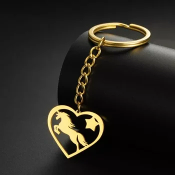 Elegant Gold Color Stainless Steel Keychain with Heart & Star Pendant