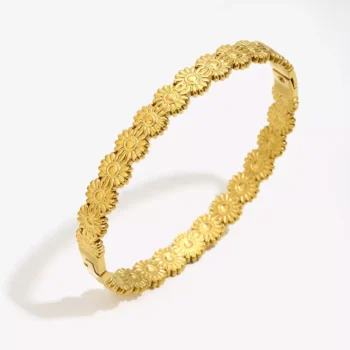 18K Gold Plated Daisy Flower Bangle – Stylish Women’s Jewelry