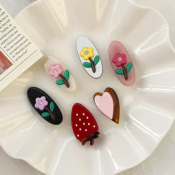 Sweet Floral & Strawberry Oval Hair Clips