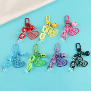Heart-Shaped Acrylic Chain Keychain with Metal Bell Pendant