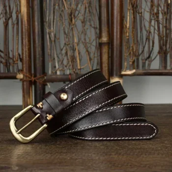 3.8CM Premium Cowhide Leather Belt with Copper Buckle for Men