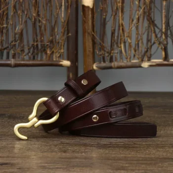 Women’s Genuine Leather Thin Belt with Copper Buckle – 0.95 Inch Wide