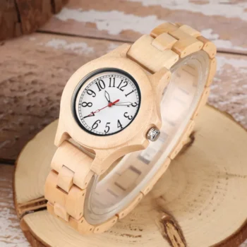 Natural Maple Wood Quartz Ladies Watch with Wooden Bracelet