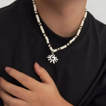 Minimalist Coconut Husk Bead Necklace with Sunflower Pendant for Men