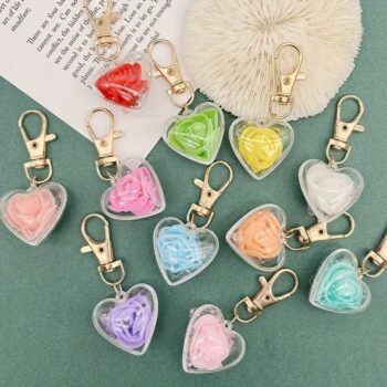 Romantic Heart Shaped Rose Pendant Keychain