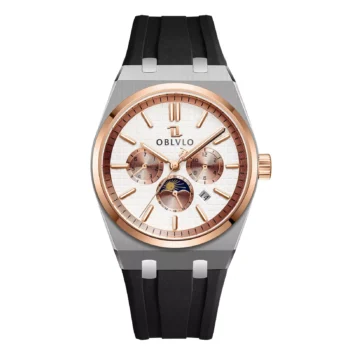 Luxury Automatic Mechanical Watch with 3 Sub-dials & Silicone Strap